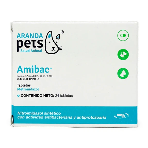 Amibac es un fármaco excelente en el tratamiento de Entamoeba histolytica, Giardia spp., Trichomonas y Balantidium coli, en caninos y felinos, además de ser coadyuvante en el tratamiento de infecciones entéricas y sistémicas causadas por organismos anaerobios.