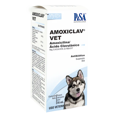 12.5 a 25 mg/kg vía oral cada 12 horas. Cuando la infección es provocada por bacterias Gram negativas se recomienda usar la dosis alta.
