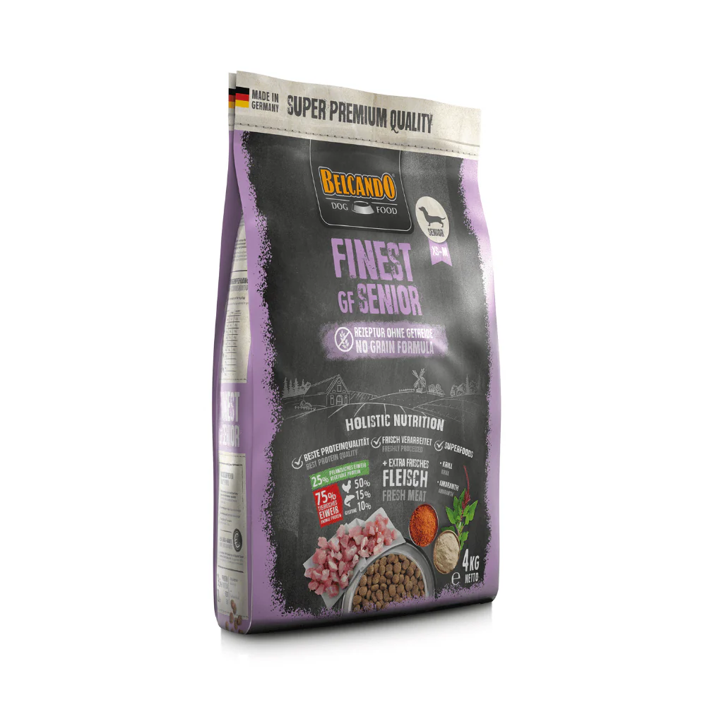 La alternativa extra sabrosa para perros mayores con sensibilidad a los cereales. Las mejores materias primas, como el amaranto, kril nutritivo y una cantidad extra de carne fresca de ave, proporcionan a nuestros olfateadores todo lo que necesitan en edad avanzada. Permiten además el cambio de nuestras variedades Finest GF a un alimento apropiado para la edad del perro, con una fórmula, como siempre, de alta calidad y sin cereales. Mezclado con agua tibia, se puede crear una deliciosa salsa para convertir BELCANDO® Finest GF Senior incluso para perros finos en una delicadeza.