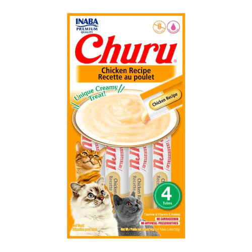 Churu Pollo es un novedoso y delicioso snack para gatos de textura cremosa (puré) y alta palatabilidad. Tiene un alto contenido de humedad lo que encanta a los gatos y además contribuye a su hidratación