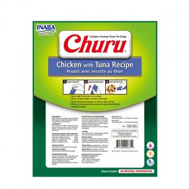 Churu Perro Pollo y Atún, es un novedoso y delicioso snack para perros de textura cremosa (puré) y alta palatabilidad. Tiene un alto contenido de humedad lo que encanta a los perros y además contribuye a su hidratación.