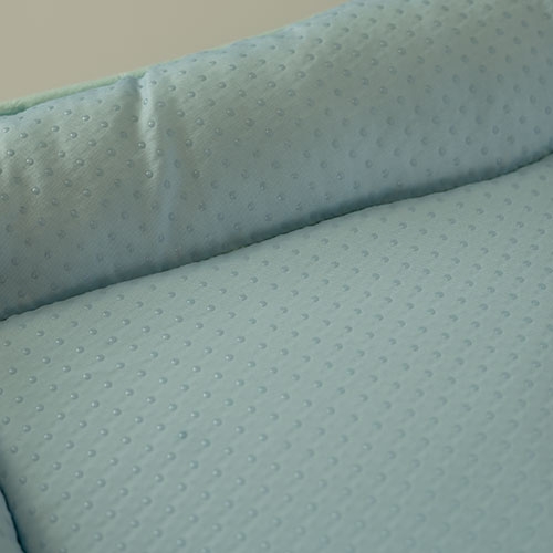 El borde está forrado con un tejido muy suave similar a la pana. La zona del centro tiene una espuma en su interior.