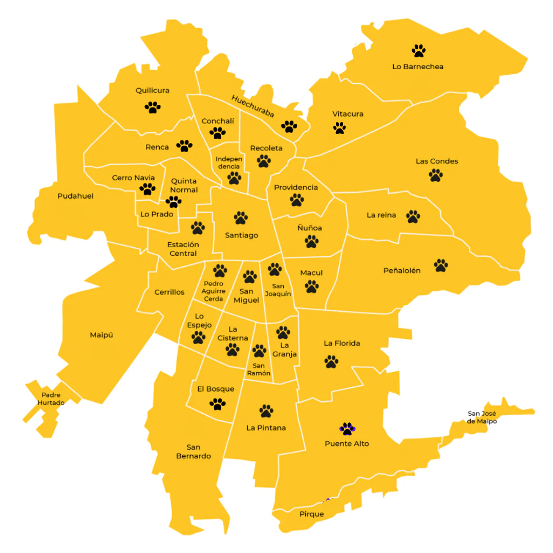 *No contamos con cobertura a comunas periféricas (Colina, Chicureo, Maipú, San Bernardo, Pirque, San José de Maipo, Padre Hurtado, Cerrillos, Pudahuel).
