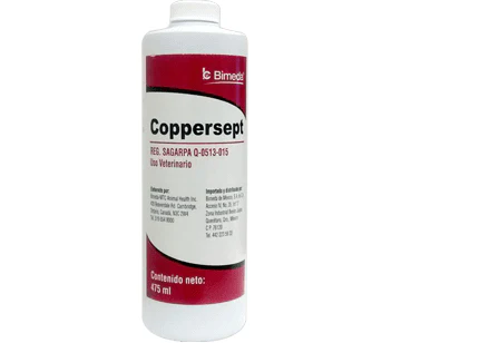 Coppersept esta indicado para tratamiento de grietas en cascos, heridas, pododermatitis necrotica (gabarro ), todo tipo de micosis (tifia o dermatofitosis), abscesos, miasis cutanea (gusaneras), verruga peluda (Fusobacterium necrophorum). Tambien es útil para la pododermatitis hipertrofica cronica o higo del caballo {Thrush).