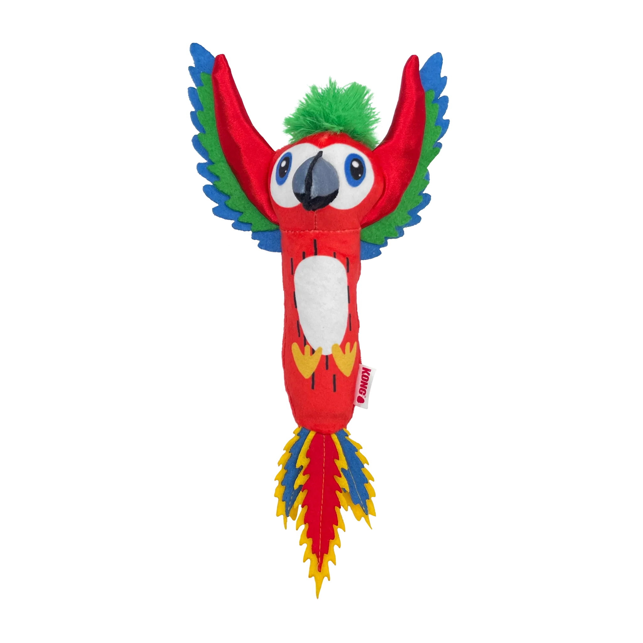 Su cuerpo afelpado es suave al tacto y fácil de agarrar, mientras que su diseño flexible permite un movimiento divertido y realista. Las alas y la cola, decoradas con plumas vibrantes, captarán la atención de tu felino y estimularán su instinto cazador. Además, el juguete contiene hierba gatera (catnip) en su interior, lo que lo hace irresistible para tu mascota y asegura horas de diversión y entretenimiento activo.