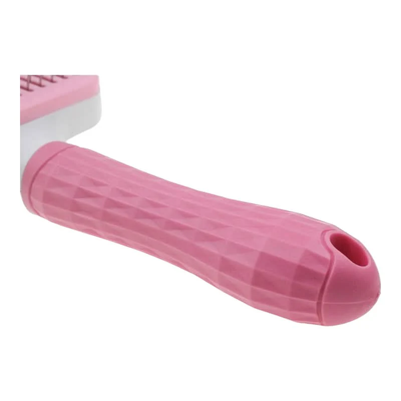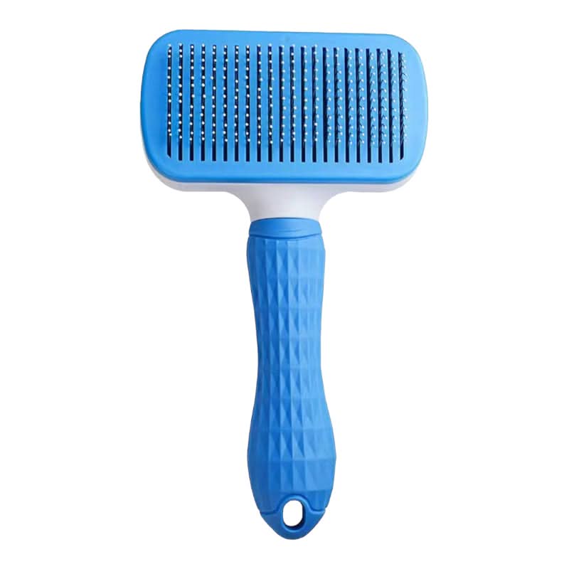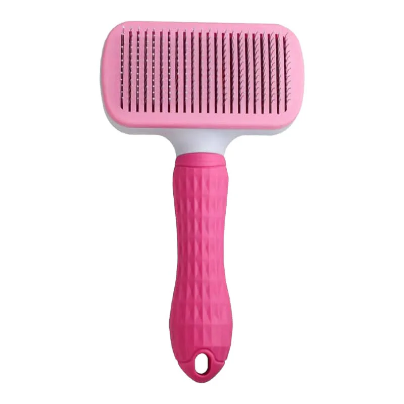 cepillo para peinar y desenredar suavemente el pelaje de tu mascota; con sus cerdas metálicas con punta protegida para evitar lastimar su piel; fácil de limpiar y recolectar el residuo de pelos con su sistema retráctil.