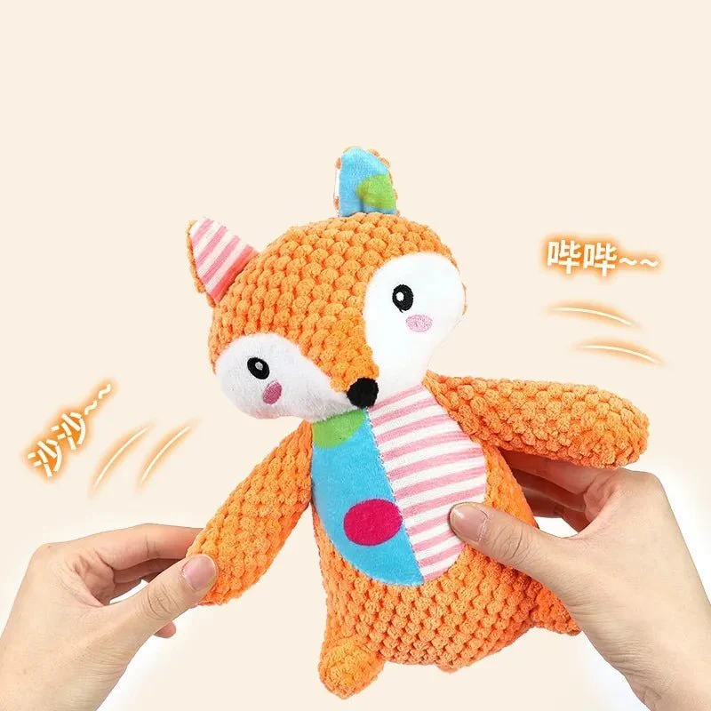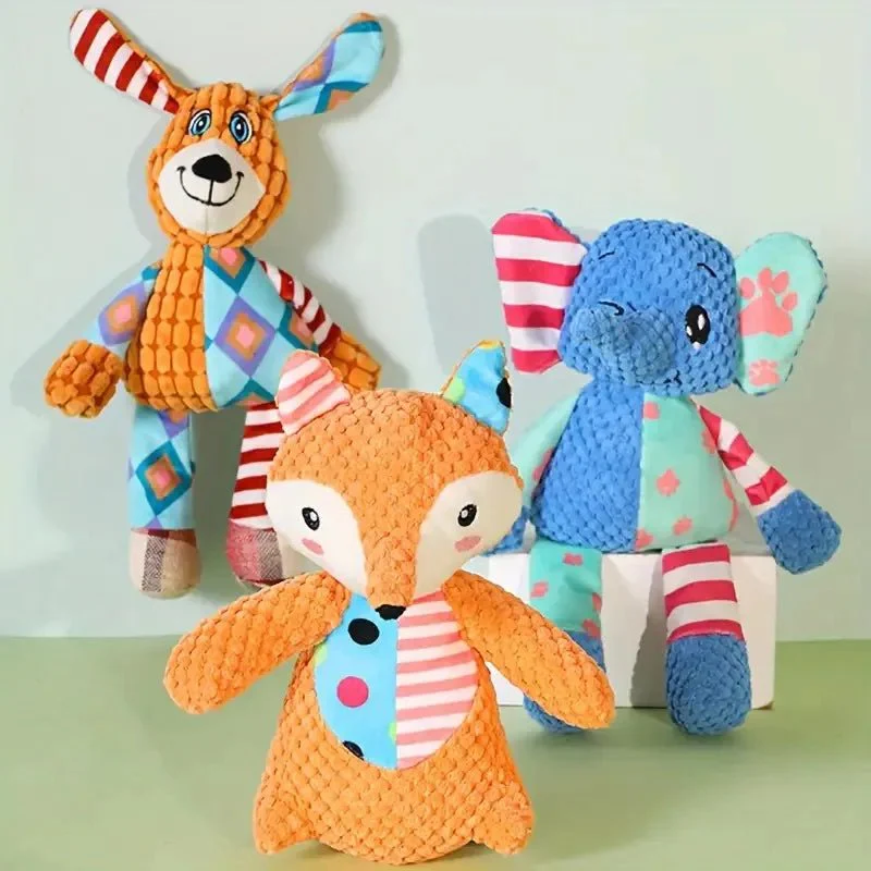 Haz que los momentos de juego sean aún más divertidos con este tierno juguete de peluche con sonido. Diseñado para estimular los sentidos de tu mascota, su textura suave y el sonido que emite al morderlo lo convierten en el compañero perfecto para entretener, aliviar el estrés y fomentar la actividad física. Ideal para juegos interactivos o para que tu peludo lo abrace y se relaje.
