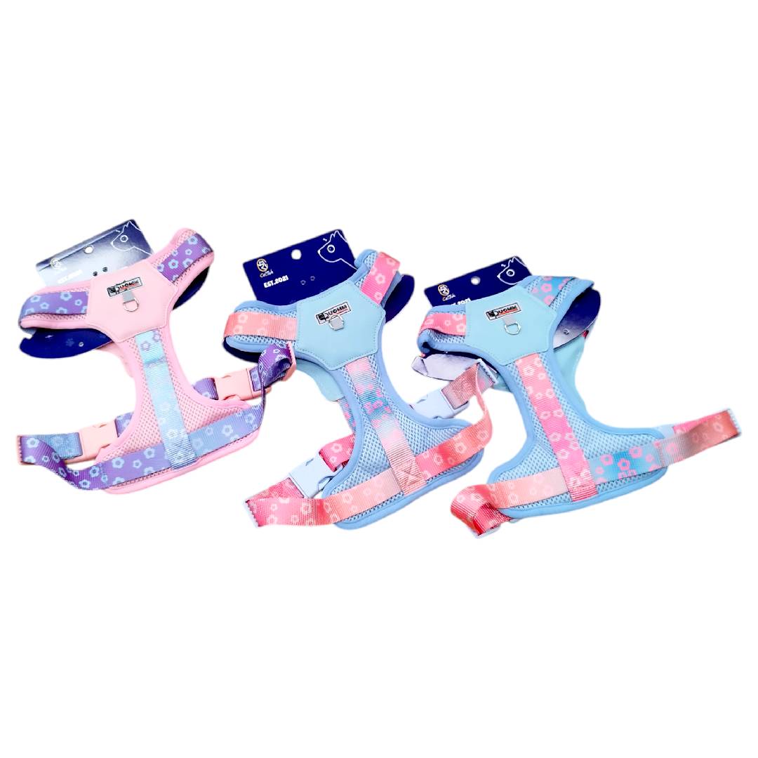 Diseñado con tela de malla transpirable, distribuye la presión de manera uniforme para evitar tirones y proteger el cuello de tu peludo. Es un arnés antiescape que se ajusta perfectamente al cuerpo de perros y gatos pequeños, brindando seguridad y estilo con sus vibrantes diseños.