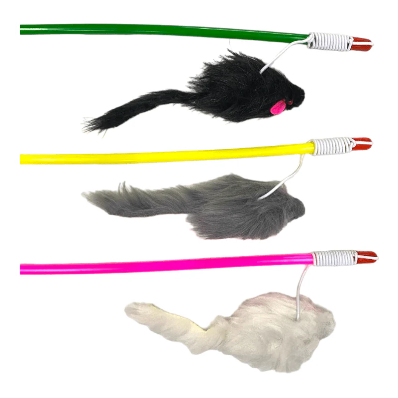 Este juguete ofrece una forma divertida y segura de interactuar con tu gato. Puedes sostenerlo y hacer movimientos rápidos y erráticos para estimular su agilidad y coordinación. Además, el diseño de la vara permite mantener una distancia segura entre tus manos y las garras de tu gato durante el juego.
