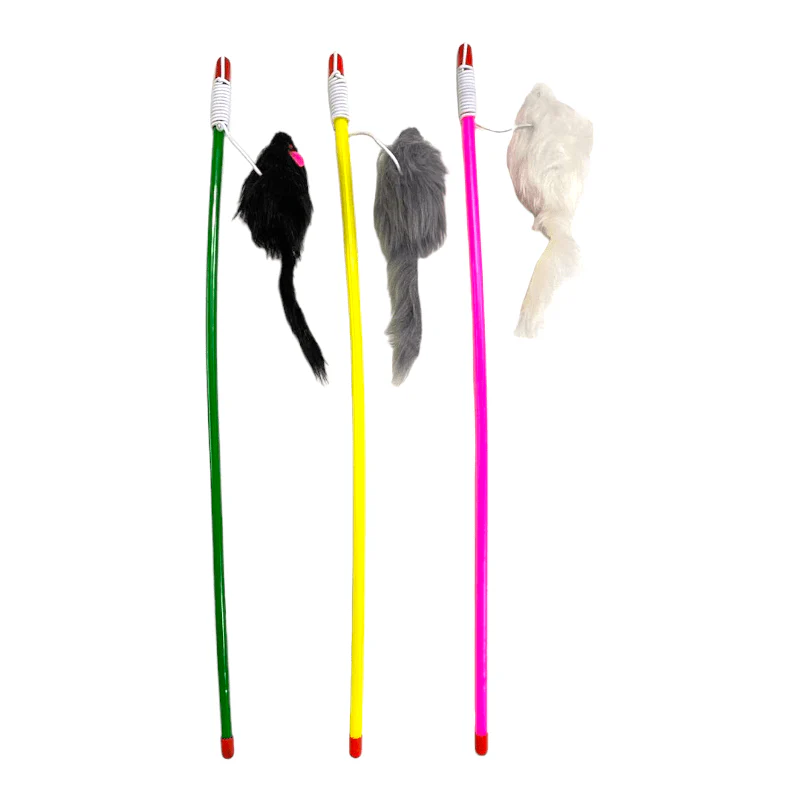 La vara de juguete para gato es un accesorio interactivo perfecto para entretener a tu felino. Consiste en una vara flexible con una cuerda en el extremo que sostiene una pelota y una pluma.