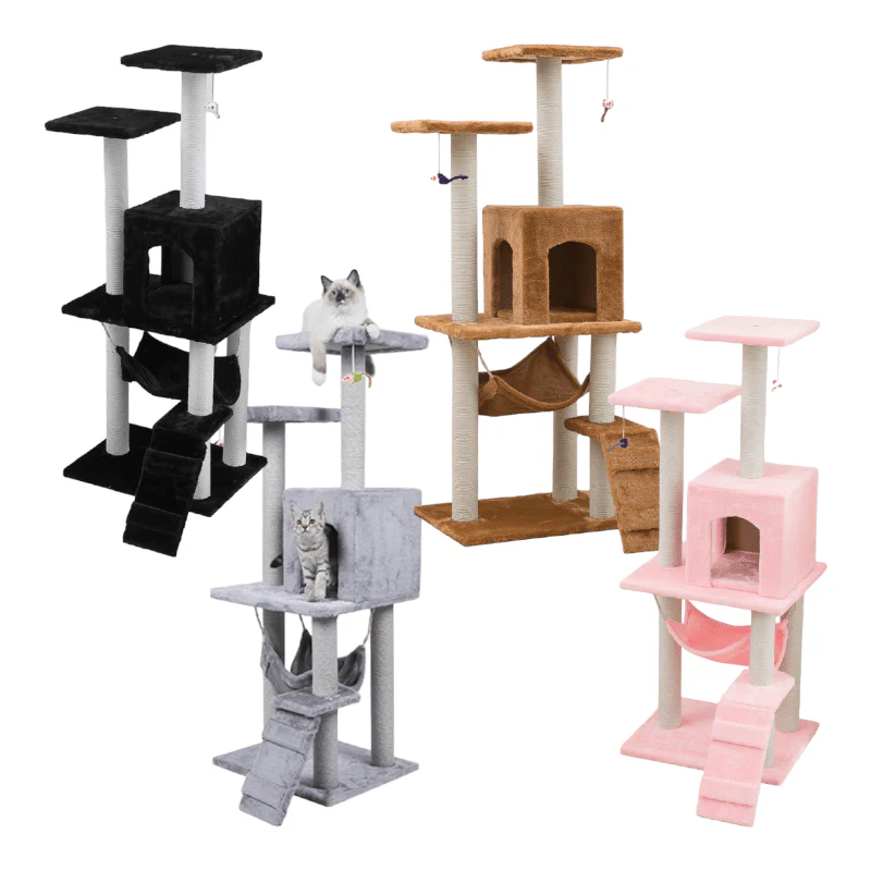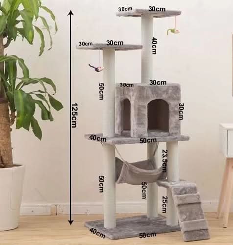 Esta estructura para gatos de 125 cm es mucho más que un simple rascador o torre de juego; es una obra de arte arquitectónica que convierte tu hogar en un parque de aventuras vertical para tus queridos felinos. Les brinda una forma emocionante de explorar, rascar, jugar y relajarse, todo en un diseño elegante que se integra perfectamente en tu hogar. ¡Una verdadera joya para mimar a tus adorables compañeros peludos!