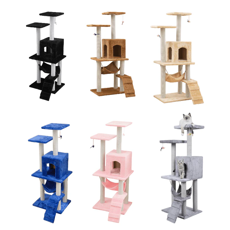 Imagina una estructura para gatos que llevará la diversión y la aventura de tus felinos a nuevas alturas. Esta no es una estructura común para gatos, es una obra maestra de diseño que ofrece un paraíso de juegos y descanso en un solo lugar.