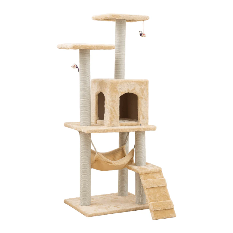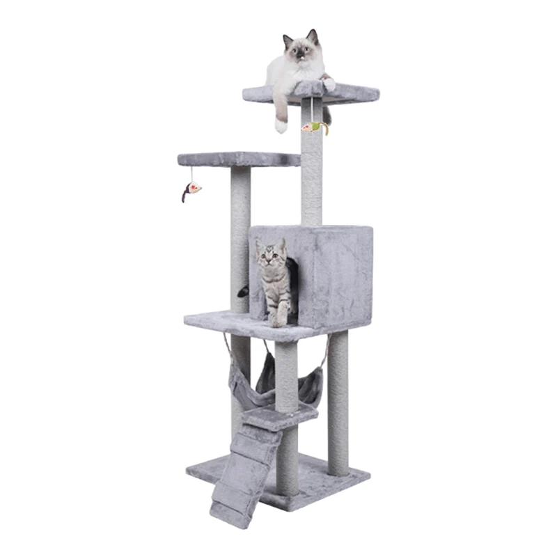 Lo que hace que esta estructura para gatos sea realmente especial es su diseño vertical. En lugar de ocupar mucho espacio en tu hogar, se eleva majestuosamente a 125 cm de altura, lo que permite que tus gatos exploren su mundo en un sentido completamente nuevo. Las columnas de escalada cuentan con texturas únicas que ofrecen a tus gatos oportunidades para rascar y afilar sus garras.
