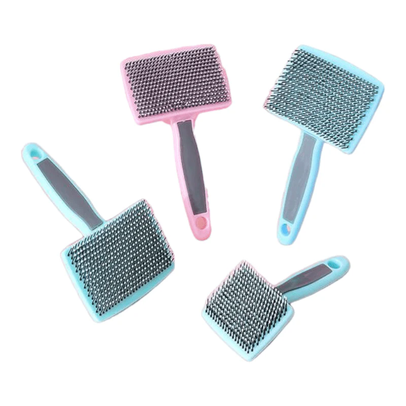 Las cerdas del cepillo son igualmente minimalistas, con una disposición uniforme y eficiente que permite un cepillado suave y efectivo. Su diseño sin complicaciones es una declaración de simplicidad, eliminando cualquier exceso innecesario para enfocarse en lo que realmente importa: mantener a tu mascota con un pelaje saludable y hermoso.