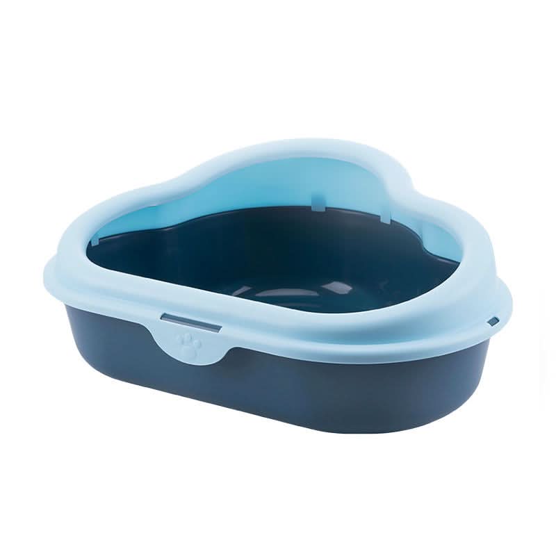 Es un arenero de tapa alta con de plástico rígido el cual tiene un acabado mate por la parte de afuera y por dentro es de textura lisa para evitar acumulación de arena dentro y facilitar su limpieza.