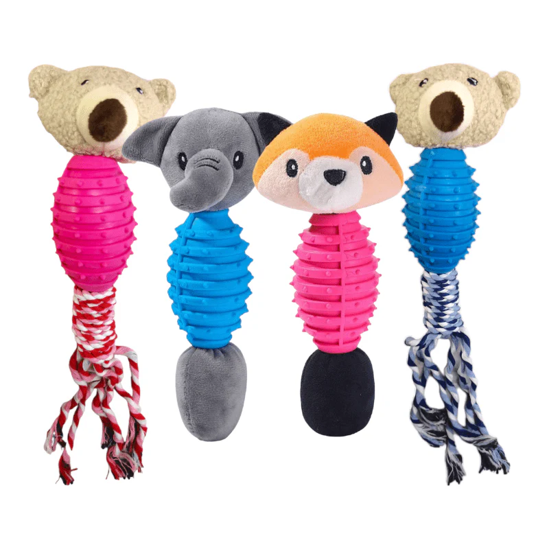 La parte de plástico del peluche está hecha de un material no tóxico que resiste incluso a las mandíbulas más fuertes. Su forma y textura ayudan a promover una buena higiene dental, masajeando las encías y ayudando a prevenir la acumulación de placa. Además, el peluche en sí está fabricado con telas suaves y resistentes que ofrecen comodidad y calidez a tu mascota, convirtiéndolo en su nuevo amigo inseparable.