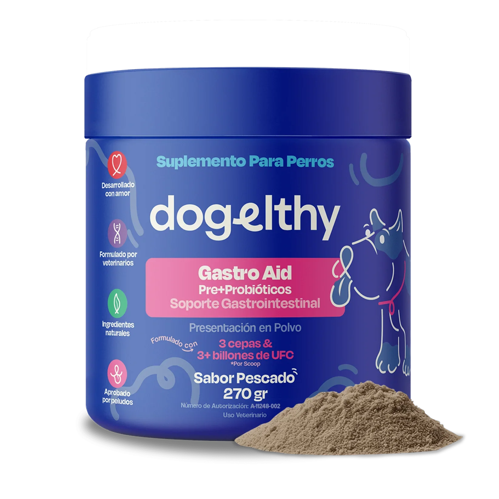 Pre + Probióticos con +3 Billones de UFC. Soporte para Absorción de Nutrientes sabor Pescado 270g.