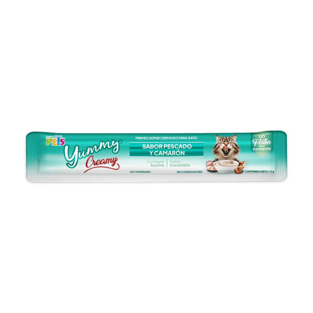 FL9203 56g 4pz Yummy Creamy Pescado y Camaron Para Gato