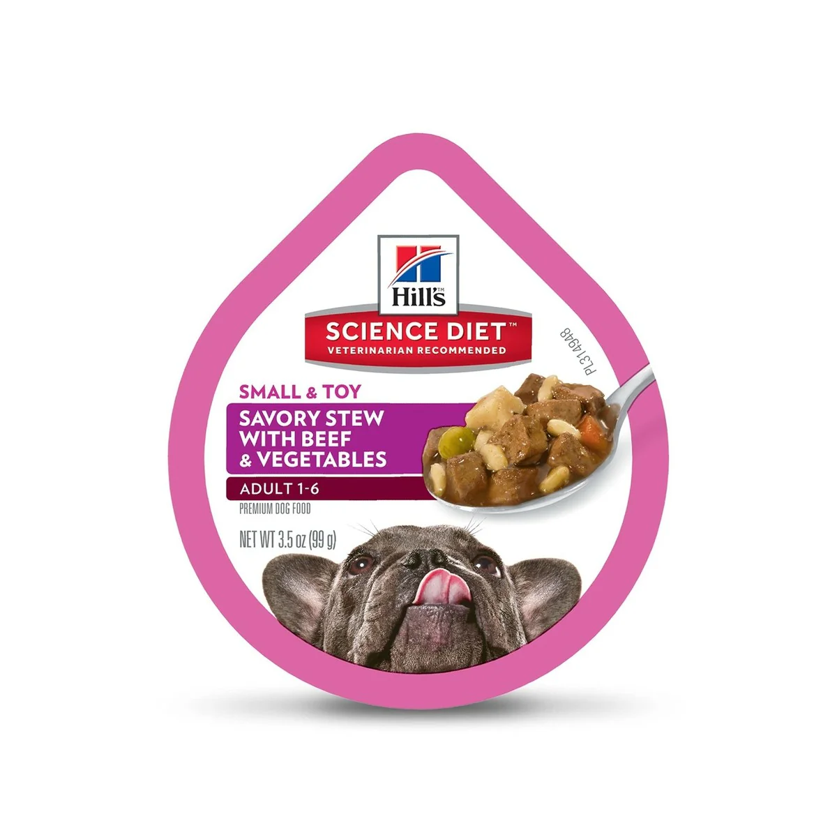 Hill’s Science Diet Adult Small & Mini, alimento húmedo en tray perro adulto raza pequeña res y vegetales 99g