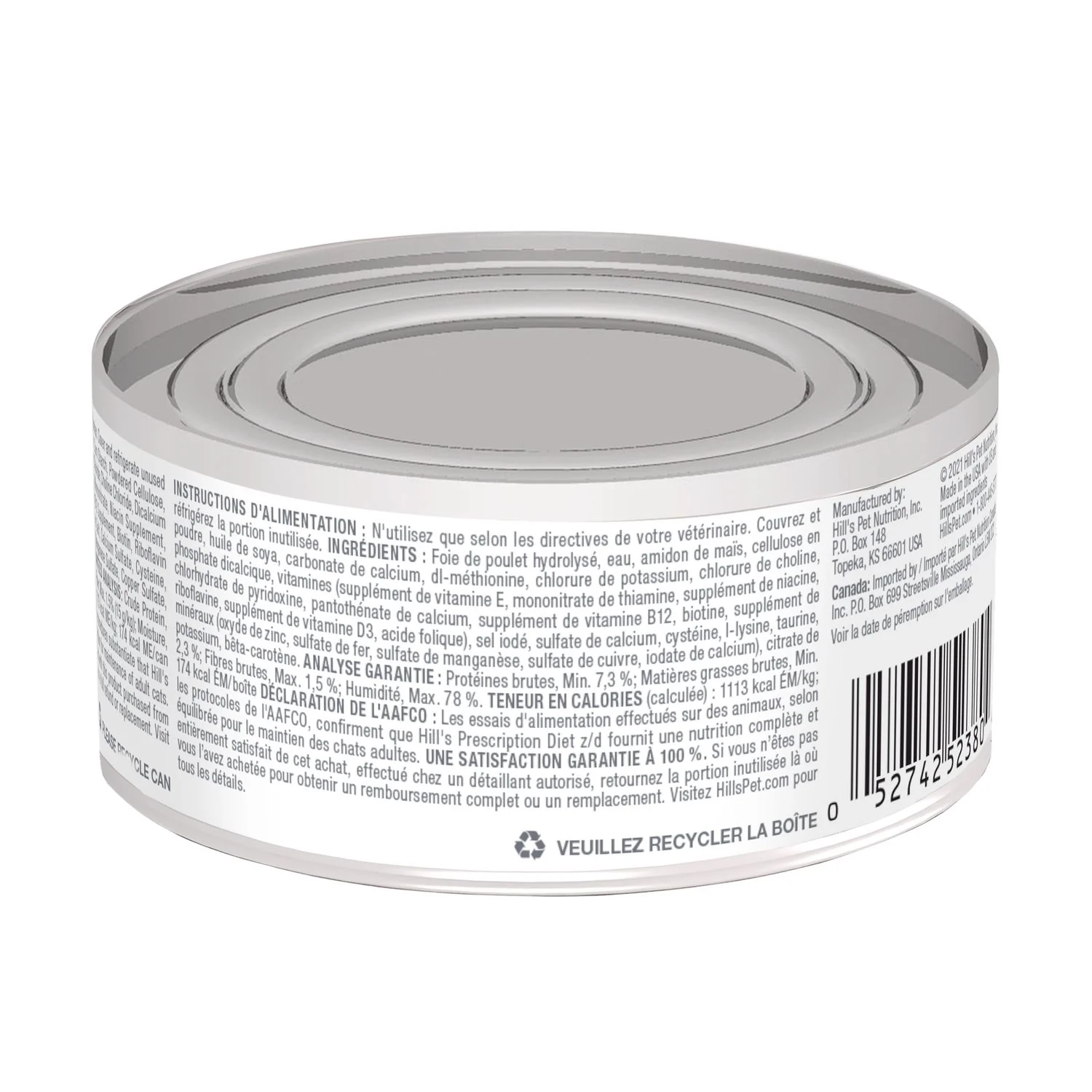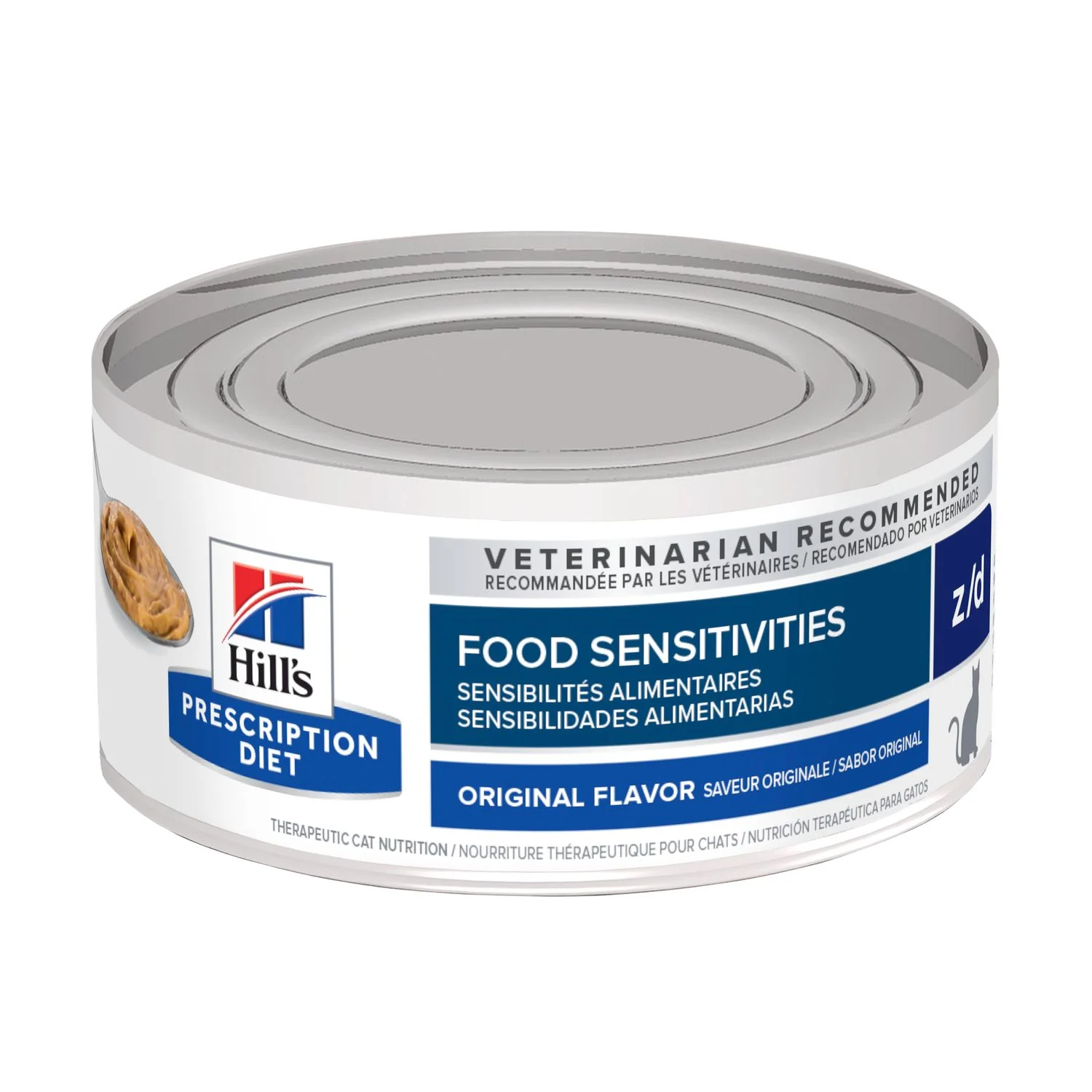 Hill’s Prescription Diet z/d es un alimento húmedo completo y equilibrado, formulado científicamente por veterinarios y nutricionistas para ayudar a evitar reacciones adversas a los alimentos. Con ingredientes cuidadosamente seleccionados y proteínas hidrolizadas, esta receta ofrece una solución eficaz para gatos con problemas de piel o digestivos, sin comprometer su felicidad ni vitalidad.