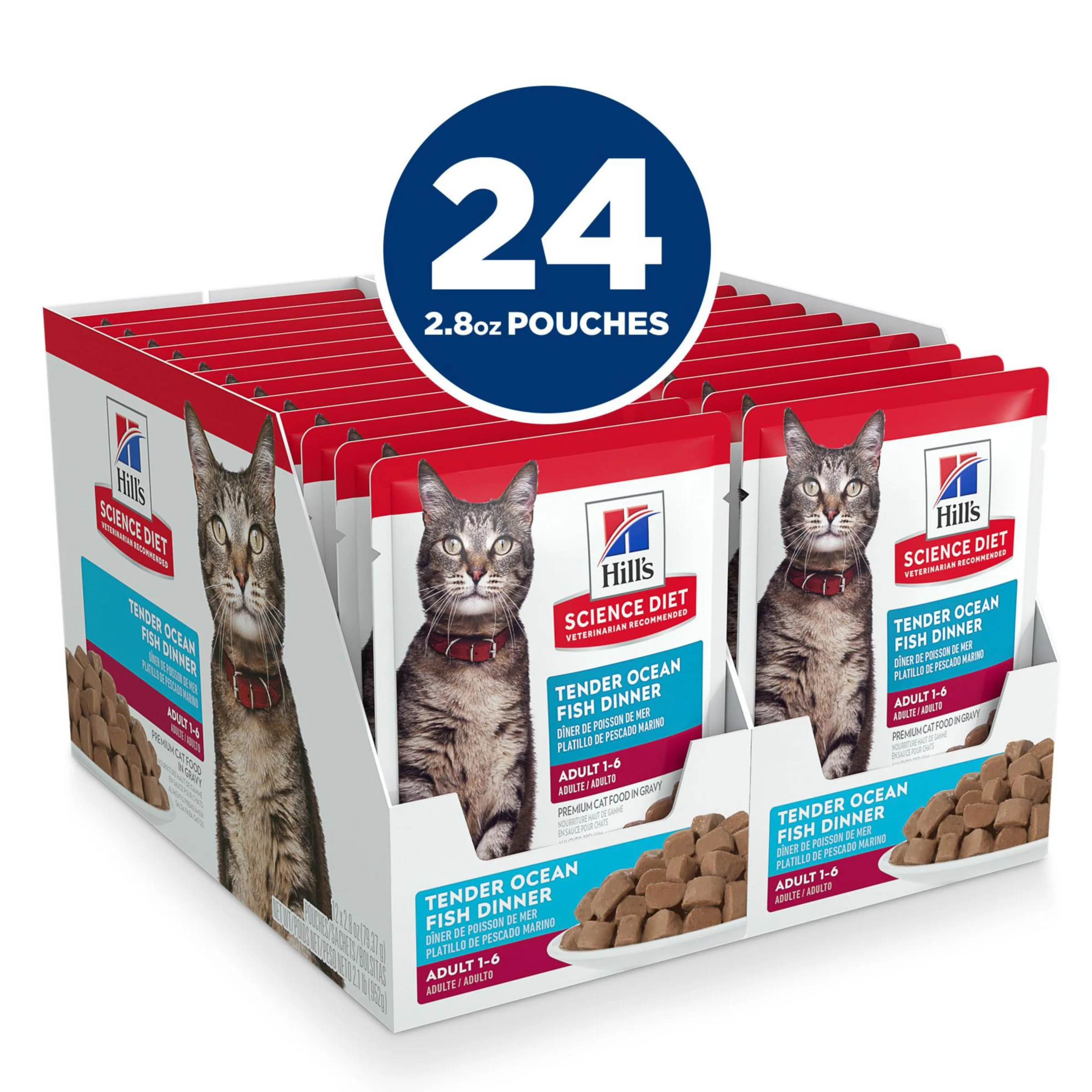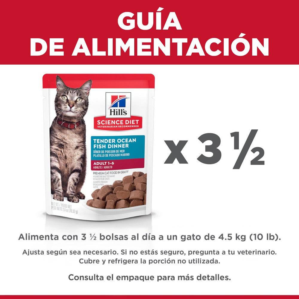 Hill’s Science Diet Adult, alimento húmedo en pouch para gato adulto, platillo de pescado marino 79g Caja con 24 pz