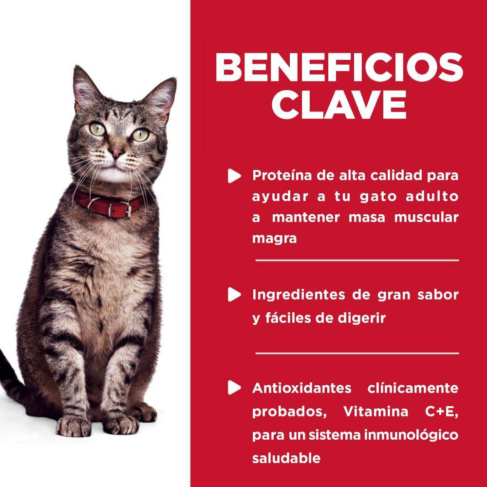 - Proteína de alta calidad para ayudar a tu gato adulto a mantener masa muscular magra.