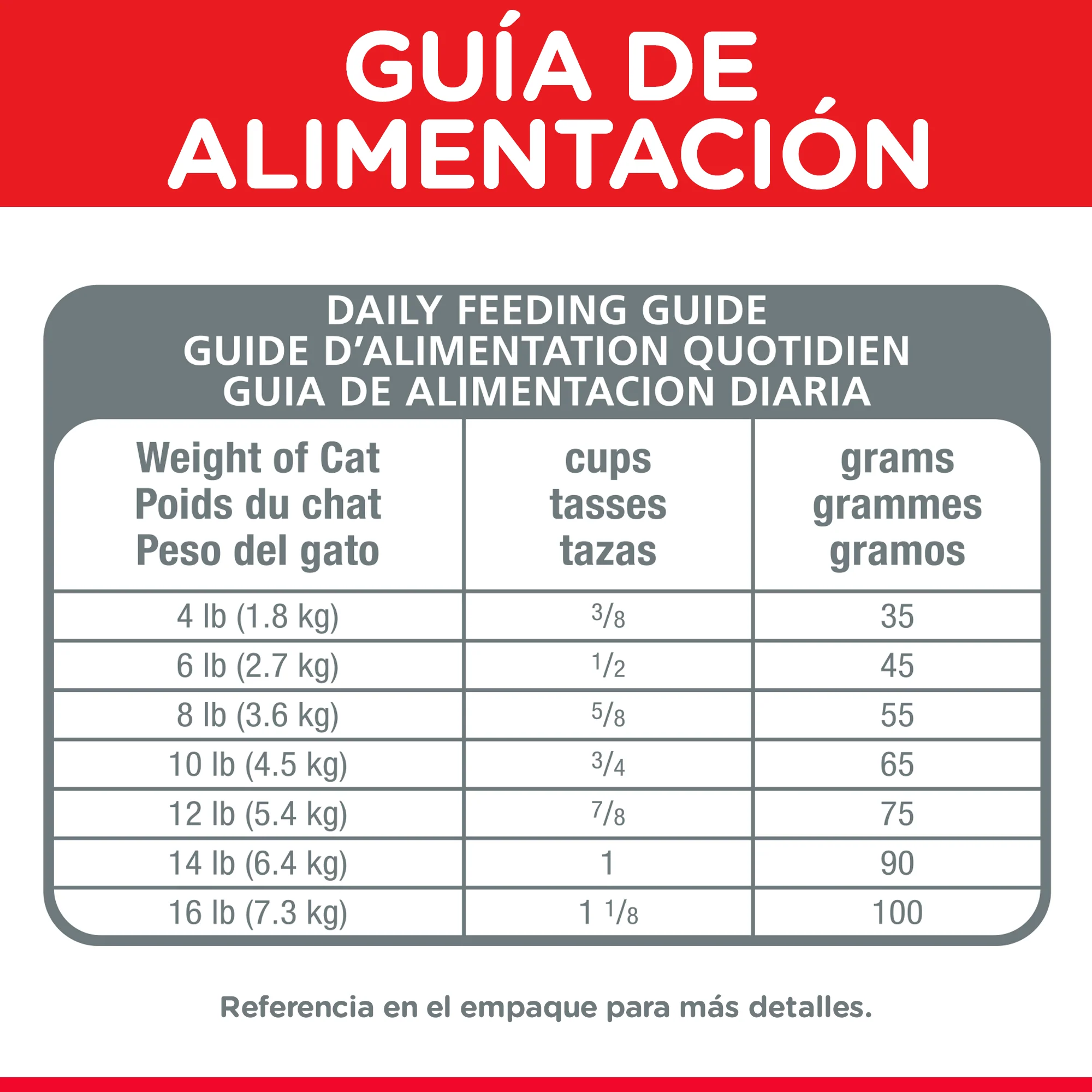 Pregunta a tu veterinario por instrucciones de alimentación específicas para tu mascota.