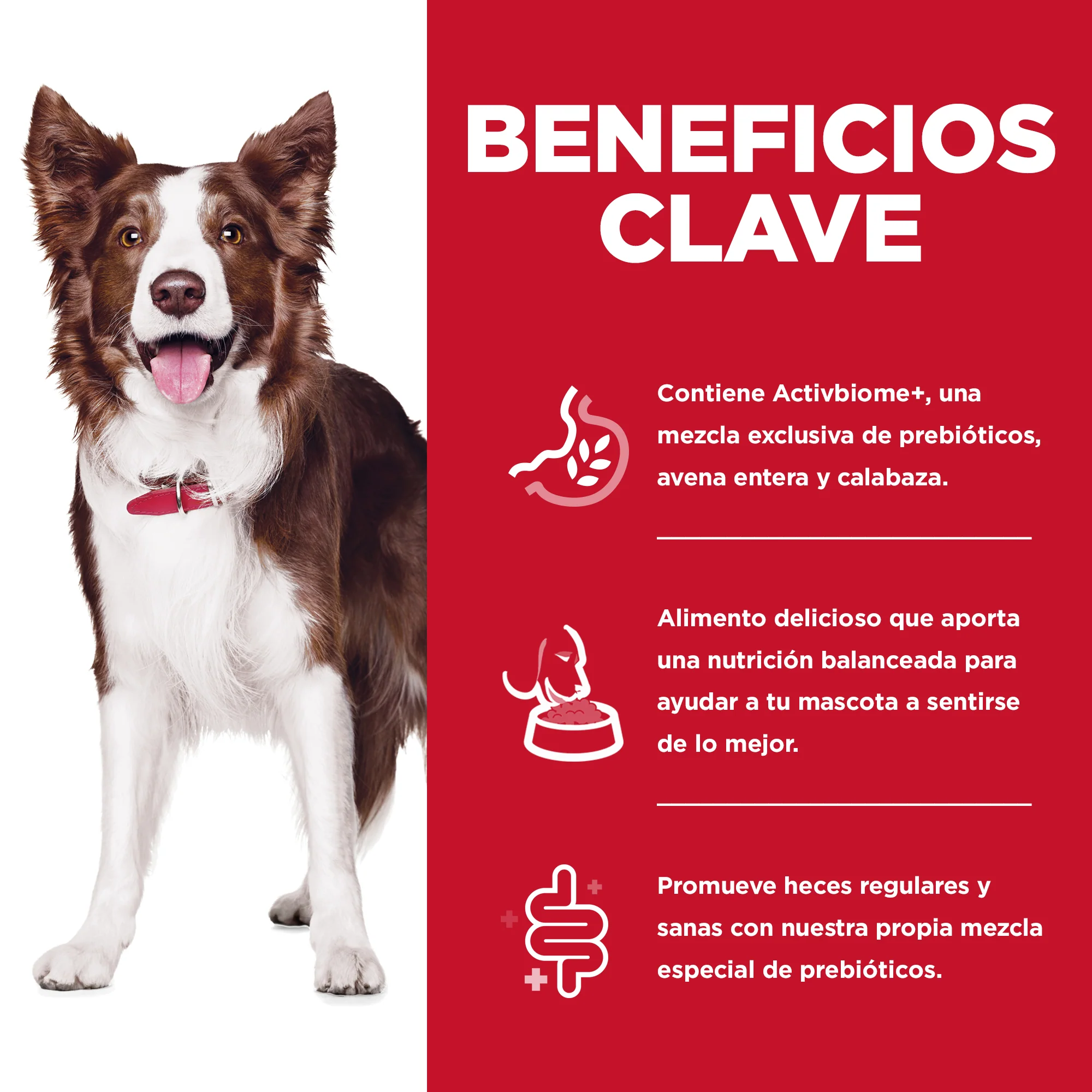En Hill’s, estudiamos la biología de las mascotas para comprender cómo la nutrición afecta la salud digestiva. Los prebióticos son nutrientes que alimentan a miles de millones de microbios en el microbioma intestinal que son esenciales para una buena salud. Nuestra innovadora combinación de prebióticos, ActivBiome +, respalda el microbioma único de cada mascota para una digestión saludable y bienestar general.