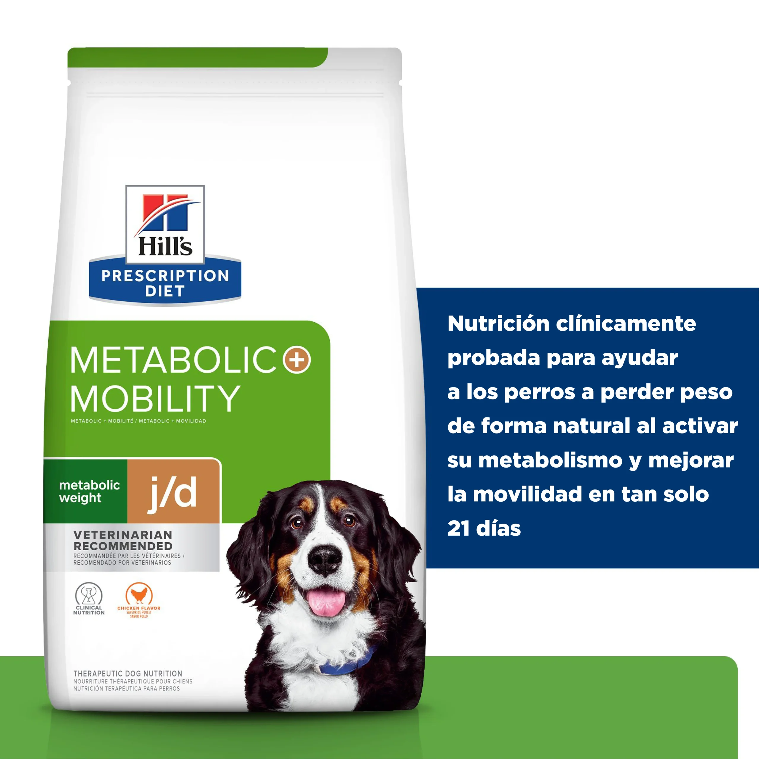Los nutriólogos y veterinarios de Hill’s desarrollaron la nutrición clínica Prescription Diet® Metabolic + Mobility Canine, nutrición clínica formulada especialmente para apoyar en el manejo del peso de su perro y salud de sus articulaciones. De hecho Metabolic + Mobility Canine contiene nutrición clínicamente comprobada para mejorar la movilidad en tan sólo 21 días Y reducir el peso corporal en un 13% en 60 días