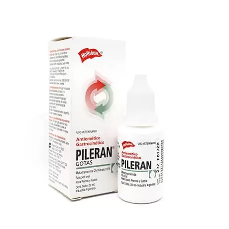 0,5 mg/kg de peso vivo cada 6-8 horas, equivalente a 2 gotas de Pileran® Gotas/1 kg de peso vivo cada 6-8 horas.