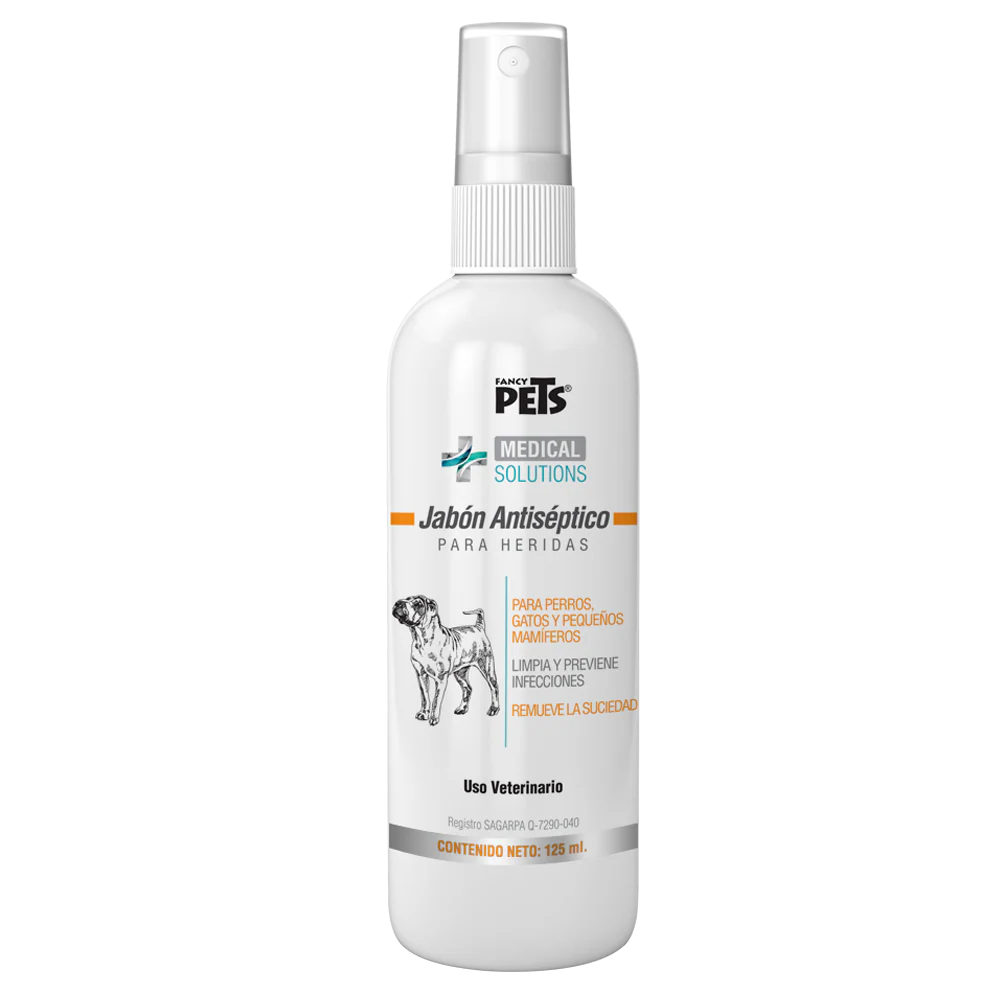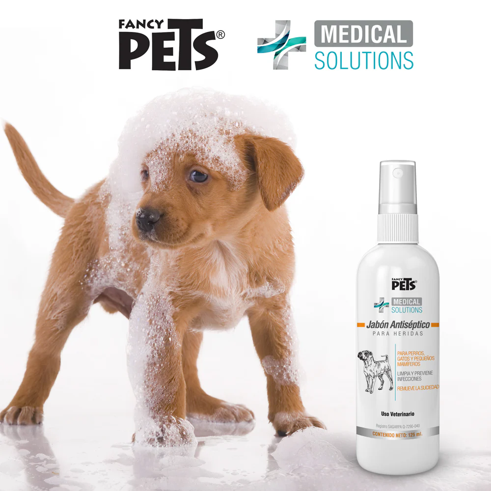 Fancy Pets Medical Solutions Jabón Antiséptico para heridas es un auxiliar en el tratamiento de heridas de perros, gatos y pequeños mamíferos.
