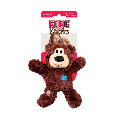 Los Wild Knots de KONG son suaves y agradables en el exterior. Los ositos Wild Knots tienen el éxito garantizado entre los perros y sus dueños. Los perros adoran su esqueleto anudado. Los Wild Knots de KONG tienen menos relleno para no ensuciar tanto y chirrían para fomentar el juego.