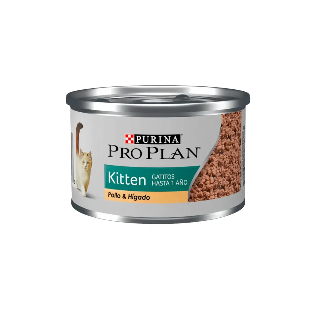 Lata Pro Plan® gatos kitten pollo & hígadocon Tecnología Optistart Gato es un alimento húmedo completo y balanceado para gatos en crecimiento de hasta 12 meses. Es una formula completa y balanceada desarrollada por veterinarios y nutricionistas, y que provee una nutrición de alta calidad y digestibilidad que ayuda a los gatitos a crecer fuertes y sanos.