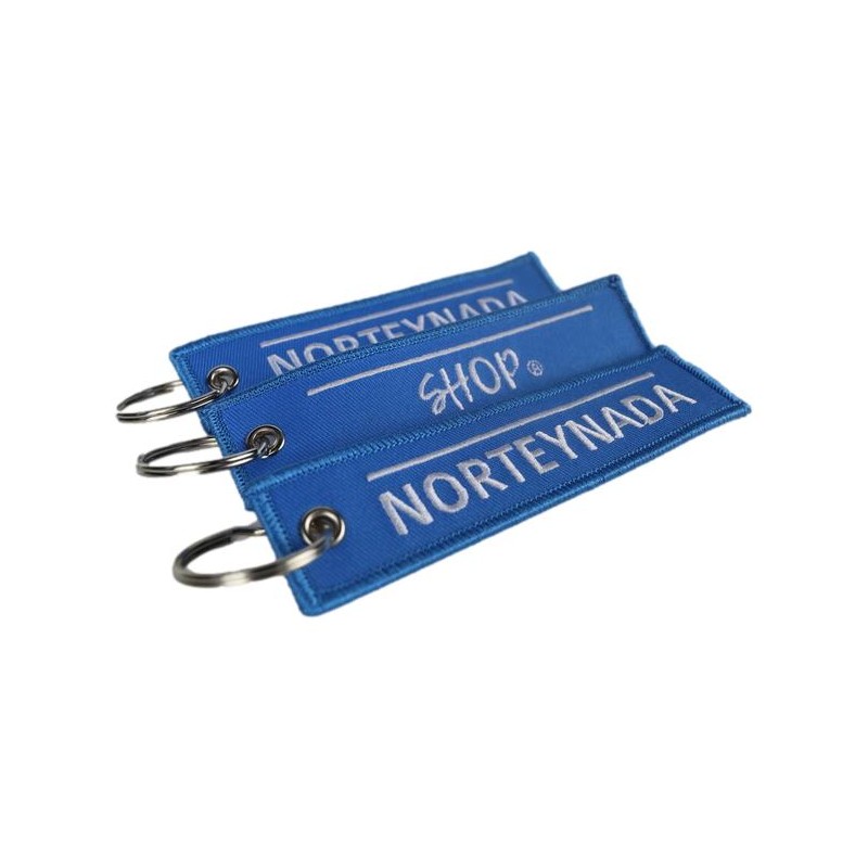 Llavero NORTEYNADA de Nylon bordado en color azul y blanco.