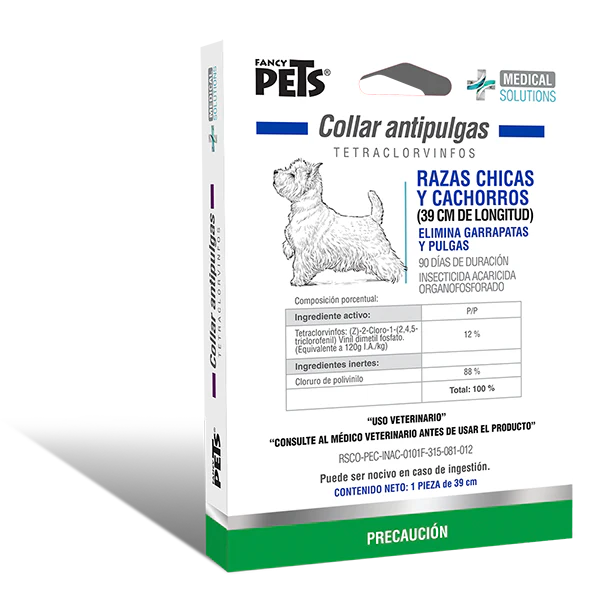 Proteja a su mascota con el Collar Antipulgas MS para razas chicas y cachorros. Con 39 cm, ofrece defensa efectiva contra pulgas y garrapatas, ajustable y seguro para mantener a su mascota c¢moda y libre de parasitos.
