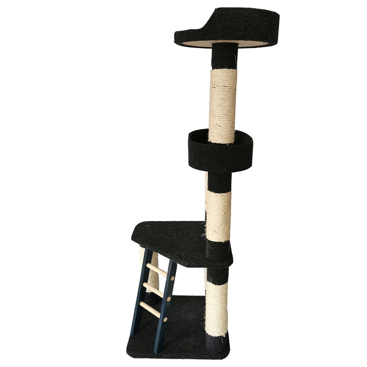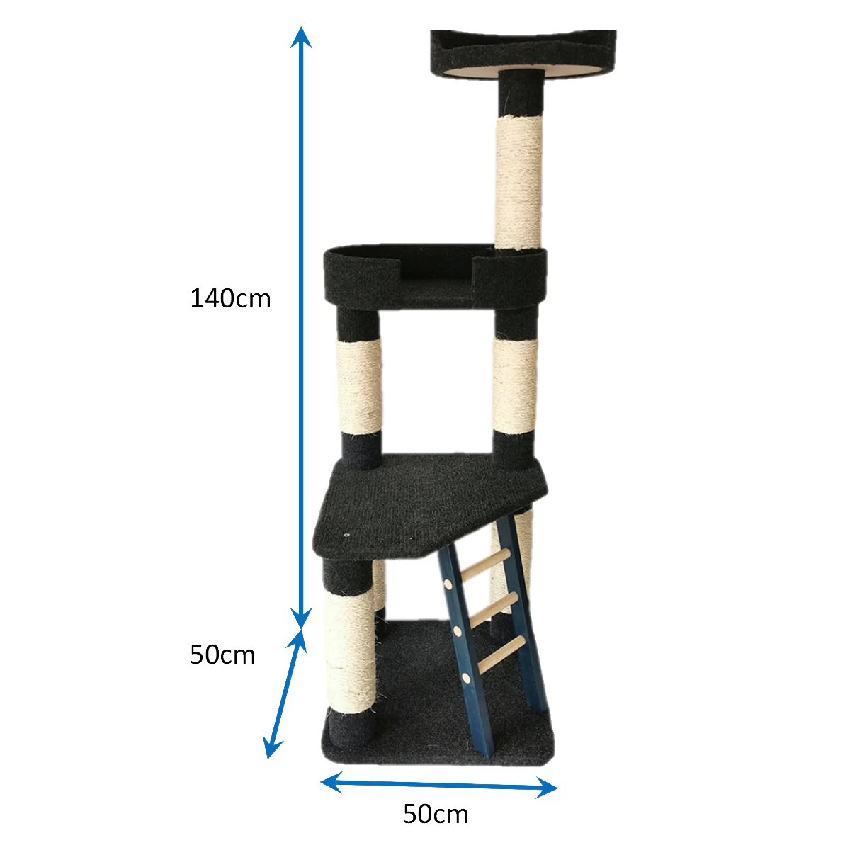 Tamaño: 51cm x 51cm x 150cm Tela Resistente y Durable. Ideal para Uno o Varios Gatos de Cualquier Tamaño y Edad. Fácil de Armar. Muy Fácil de Limpiar. Rascador Grande con Excelente Calidad. El rascador cuenta con varios postes (Torres) para rascar, hecho con materiales naturales y durables. Cuenta con 3 niveles para que puedan trepar todos tus Gatitos y una escalera Manten a tu gato seguro y activo sin necesidad de salir de casa. Excelente y Divertido lugar de juego y descanso para tus gatitos.