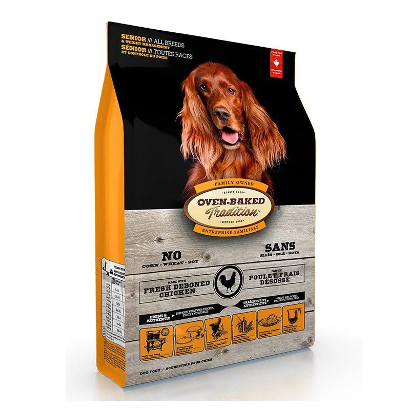 Oven-Baked Tradition Senior & Weight Management All Breeds es un alimento indicado para perros senior de todas las razas y tamaños con tendencia al sobrepeso. Favorece la pérdida de peso dejando saciado a nuestro peludo. Esta receta se cocina lentamente a baja temperatura en el horno en pequeñas porciones para garantizar la frescura y la calidad. Sin conservantes artificiales. El primer ingrediente es el pollo fresco. Fácil de digerir. Su croqueta, con menos aire, sacia a su perro dándole menos cantidad.