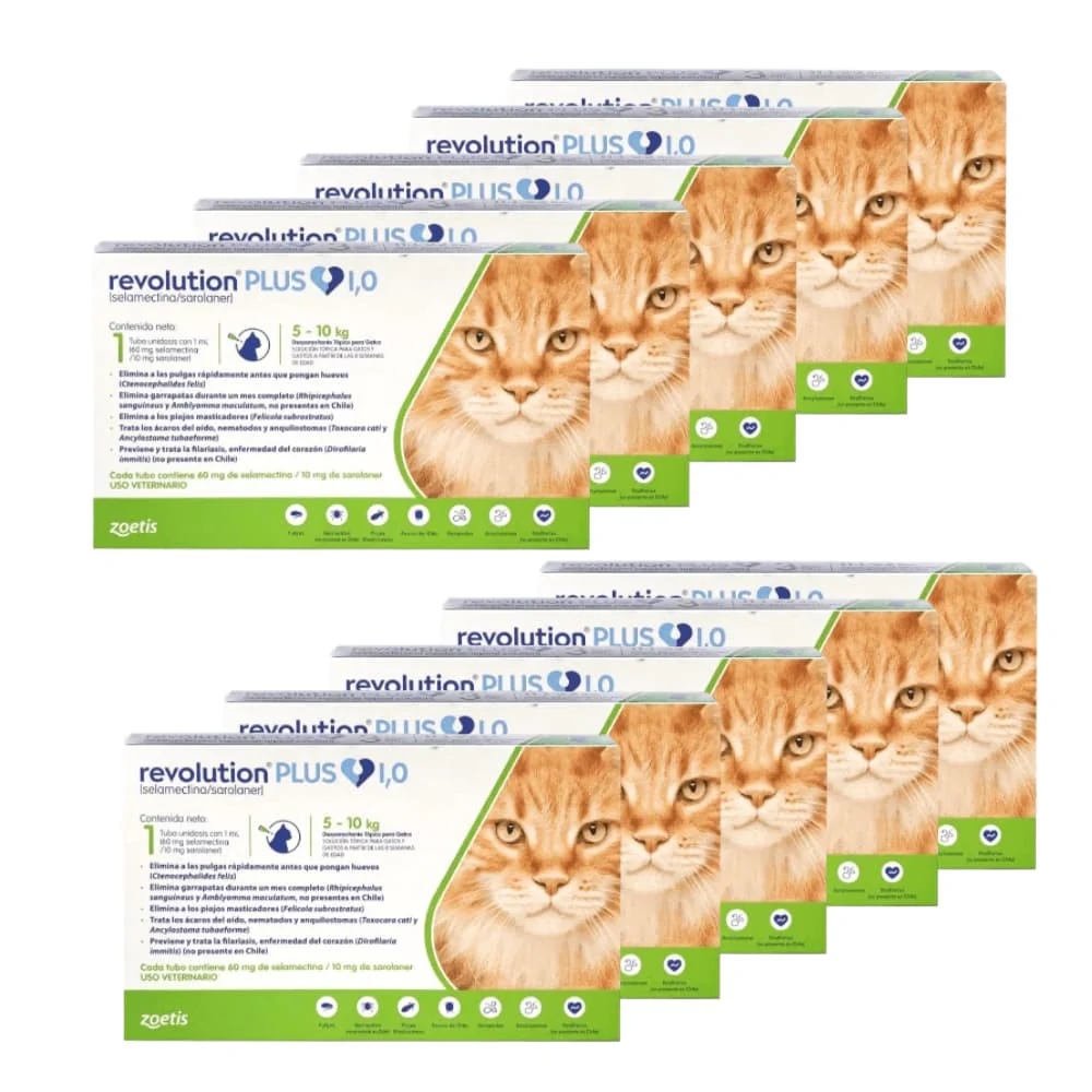 Pack 10 cajas de Revolution Plus es un antiparasitario tanto