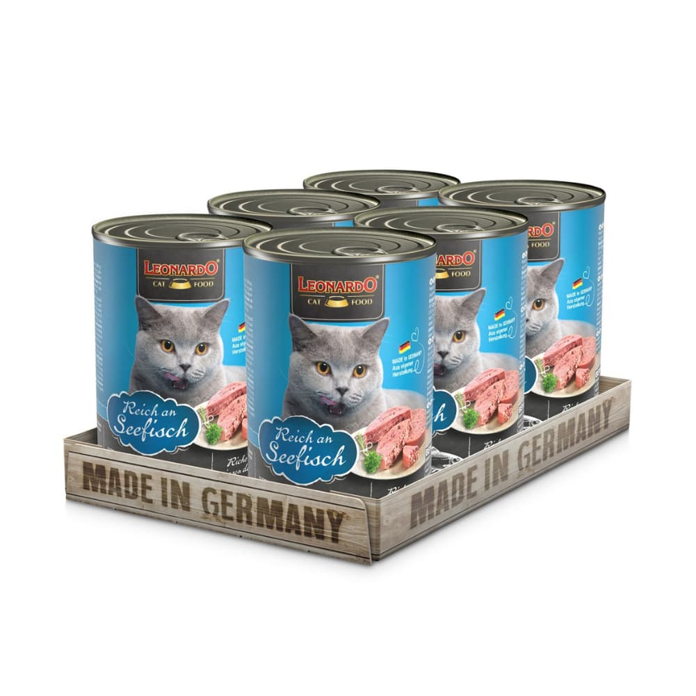 Leonardo Quality Selection Seefish, es un alimento húmedo para gatos adultos. Este sabroso alimento húmedo de origen alemán, contiene carne de pescados oceánicos recién capturados y un alto nivel de ácidos grasos esenciales y minerales.
