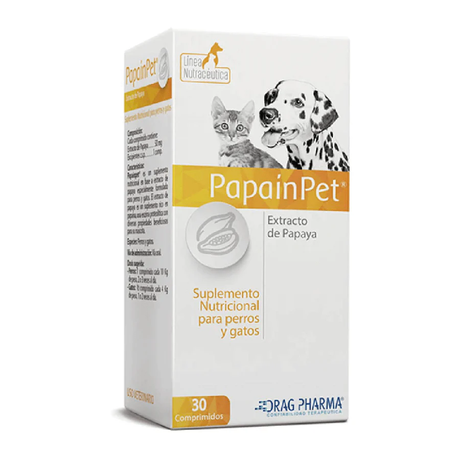 Suplemento nutricional en base a extracto de papaya especialmente formulado para perros y gatos. El extracto de papaya es un suplemento rico en papaína, una enzima proteolítica con diversas propiedades beneficiosas para su mascota.