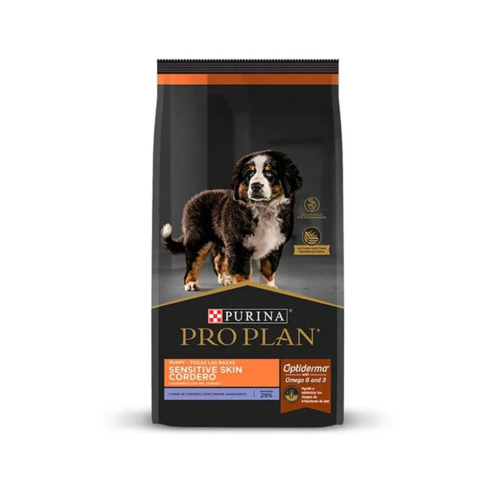 Pro Plan Sensitive Skin de Cordero y Arroz para Cachorros esta formulado para cachorros, hembras gestantes y lactantes de todas las razas con piel sensible con altos aportes de ácidos grasos Omega 6 y 3 que refuerzan la protección cutánea y promueven una piel saludable y un pelaje lustroso.