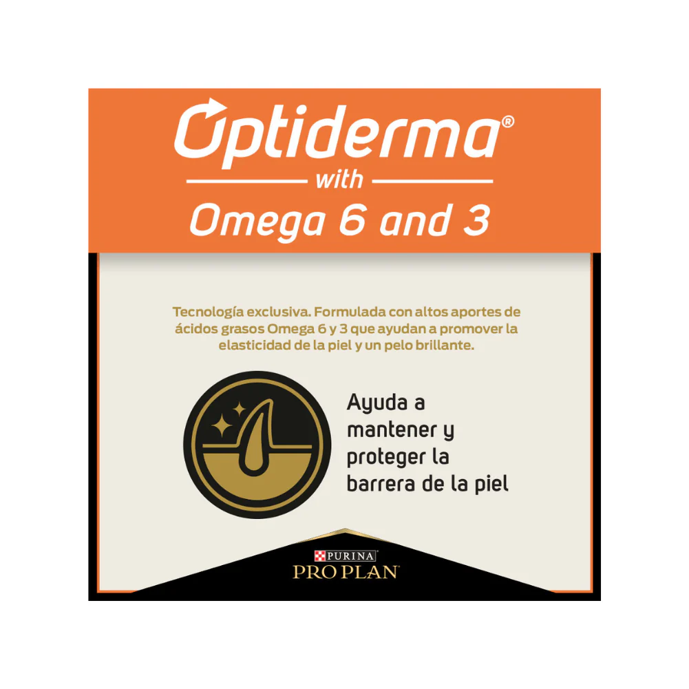 Pro Plan Adulto Sensitive Skin para perros de razas medianas y grandes ayuda a minimizar el riesgo de la irritación de la piel asociada con la sensibilidad alimentaria.