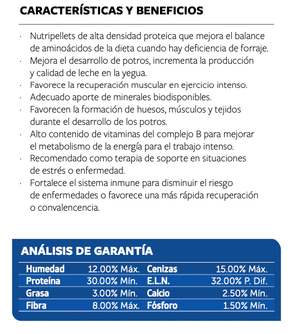 · Nutripellets de alta densidad proteica que mejora el balance