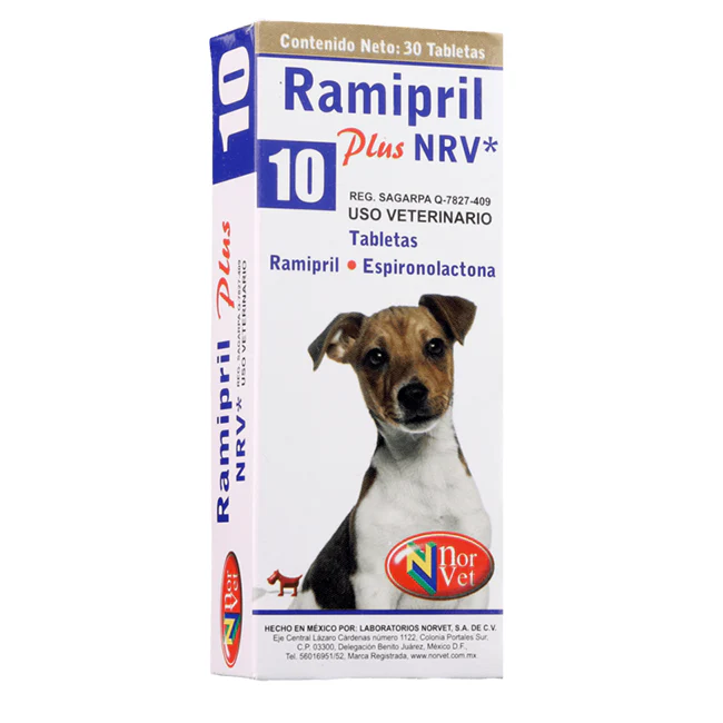 ramipril plus 10 nrv* es un inhibidor de la enzima convertidora de la angiotensina (ieca) que actúa como vasodilatador mixto el cual está indicado para el tratamiento de la la insuficiencia cardiaca congestiva causada por insuficiencia valvular (endocarditis) o cardiomiopatía en perros.