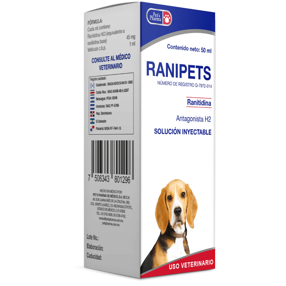 Ranipets Actúa como antagonista competitivo de los receptores H2 de la histamina que reduce la secreción del ácido gástrico. Indicado para el tratamiento de gastritis, úlcera gástrica, úlcera duodenal, esofagitis, reflujo gastroesofágico, gastritis medicamentosa o en cualquier estado en donde se requiere un control efectivo de la secreción del ácido clorhídrico.