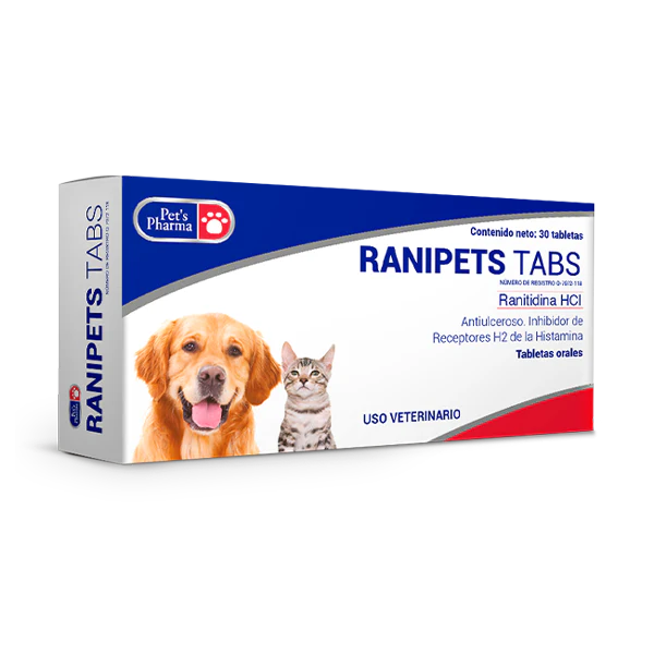 Gastritis crónica, ulceración del tracto gastrointestinal o gastrinoma 2-4 mg/kg cada 8-12 horas durante 14 días, equivalente a 1 tableta por cada 11-22 kg de peso. Hipergastrinemia ocasionada por falla renal crónica.