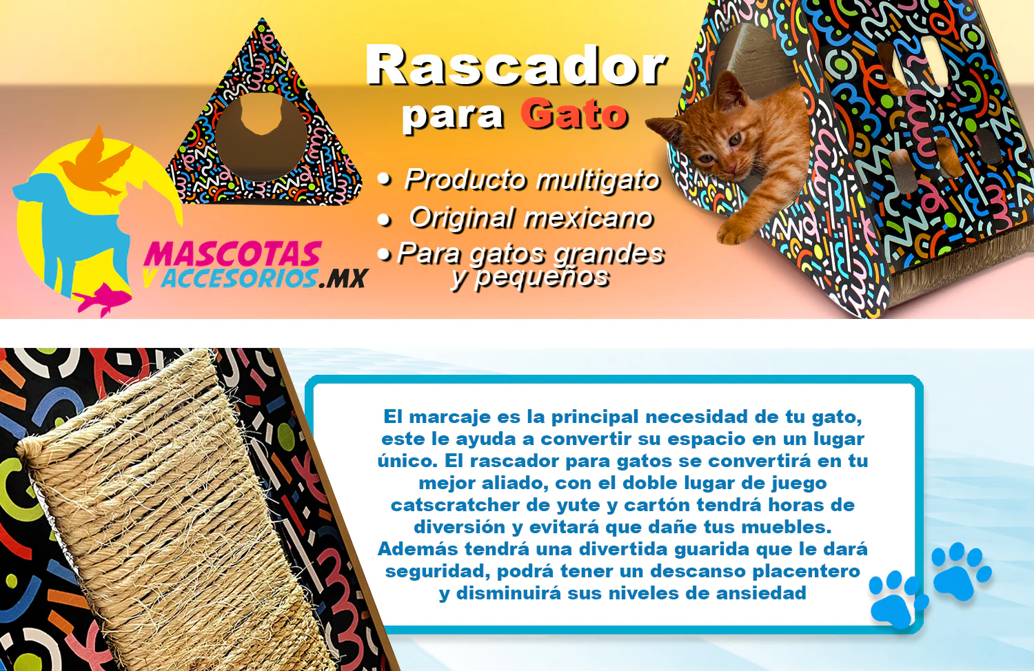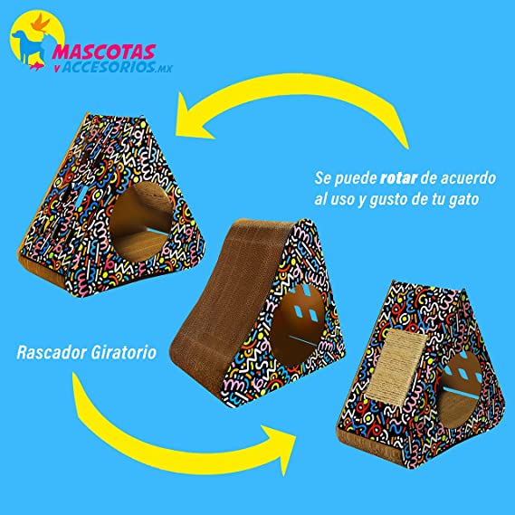 Rascador de Cartón para Gatos con Catnip (47cm x 43.5cm x 24cm) Juguete estructura para rascar Mueble para gatos para mantener a tu gatito entretenido y relajado durante todo el día. Desde afilar sus garras hasta simplemente recostarse alrededor, este rascador de gato es un artículo imprescindible para su gato. Cuenta con distintos modos de juego, Zona de Rascador de Cartón, Zona de Rascador de yute, zona para colocar juguetes colgantes MEDIDAS: Ancho x Altura x Largo: 47cm x 43.5cm x 24cm Mascotas y Accesorios MX Promueve que los gatos rasguen y liberen energía de la manera más sana. Divertido, duradero y sustentable Diseño atractivo y único, a tu gatito le encantará pasar horas en el. Mantenlos alejados de tus muebles y cortinas. Proporciónale a tu gato un espacio moderno y cómodo para que pueda descansar y divertirse en un solo espacio. Los gatos necesitan jugar y rascar, además de divertido es una actividad saludable para ellos por lo que estos muebles especializados, harán más feliz su día a día. Consiente a tu mínimo.