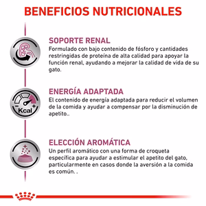 Ácidos grasos esenciales EPA y DHA, así como un complejo de antioxidantes y bajo contenido de fósforo para ayudar a retrasar el avance de la enfermedad.