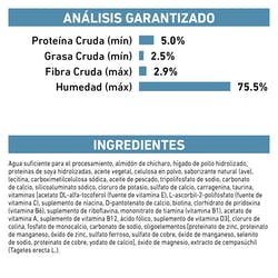 Alimento Humedo Latas Perro Royal Canin Hydrolyzed Canine 390 GrIngredientes: Agua suficiente para el procesamiento, almidón de chícharo, proteína de soya hidrolizada, aceite vegetal, hígado de pollo hidrolizado, celulosa en polvo, saborizante natural (ave), carboximetilcelulosa sódica, lecitina, aceite de pescado, tripolifosfato de sodio, carbonato de calcio, silicoaluminato sódico, sulfato de calcio, carragenina, cloruro de potasio, taurina, cloruro de colina, fosfato de potasio, vitaminas [DL-alfa-tocoferol (fuente de vitamina E), inositol, niacina, L-ascorbil-2-polifosfato (fuente de vitamina C), D-pantotenato de calcio, biotina, clorhidrato de piridoxina (vitamina B6), riboflavina (vitamina B2), mononitrato de tiamina (vitamina B1), acetato de vitamina A, ácido fólico, suplemento de vitamina B12, suplemento de vitamina D3], oligoelementos (proteinato de zinc, óxido de zinc, sulfato ferroso, proteinato de manganeso, proteinato de cobre, sulfato de cobre, óxido de manganeso, yodato de calcio, selenito de sodio), óxido de magnesio, extracto de cempasúchil (Tagetes erecta L.).