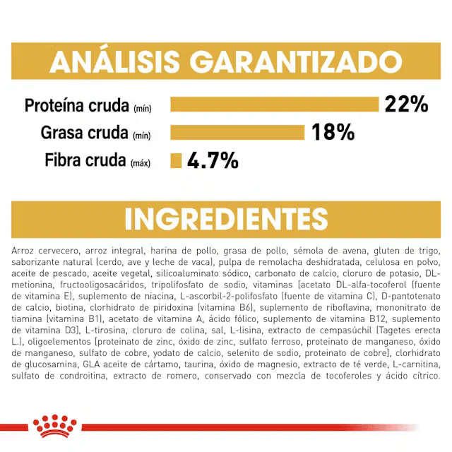 Ultra digestible. Dieta formulada con un balance de fibras solubles e insolubles para apoyar la sensibilidad digestiva, debido a menores niveles de actividad.